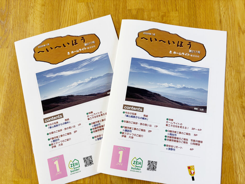 ホームライト様の「へいへいほう217号」ができました。2026.1.12お知らせ ホームライト様の「へいへいほう217号」ができました。 共有: Facebook で共有するにはクリックしてください (新しいウィンドウで開きます) Facebook クリックして X で共有 (新しいウィンドウで開きます) X いいね:いいね 読み込み中…previous本年もどうぞよろしくお願いいたします。next茅野区総会資料ができました。
