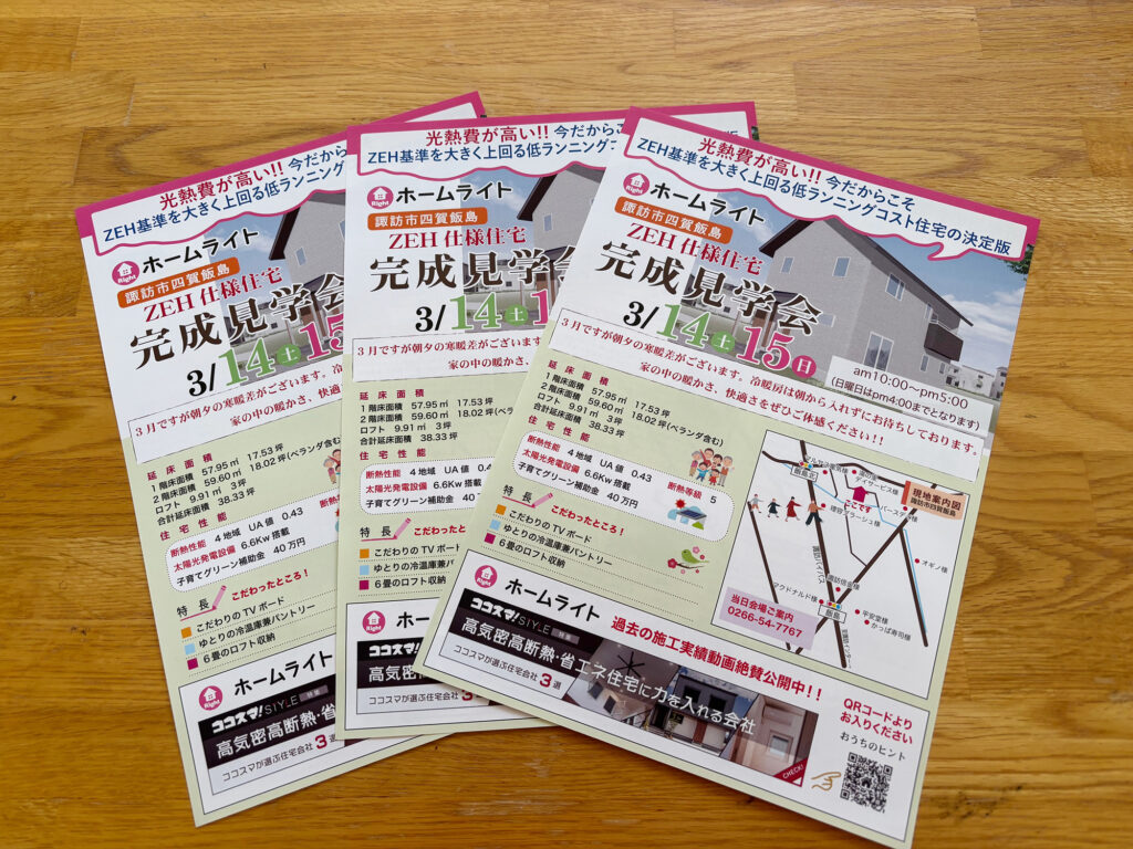 ホームライト様の見学会チラシができました。2026.2.25お知らせ ホームライト様の見学会チラシができました。 共有: Facebook で共有するにはクリックしてください (新しいウィンドウで開きます) Facebook クリックして X で共有 (新しいウィンドウで開きます) X いいね:いいね 読み込み中…previous幕張メッセにてのSMTS2026に出かけてきました。nextラリーチャレンジin八ヶ岳2026チラシができました。