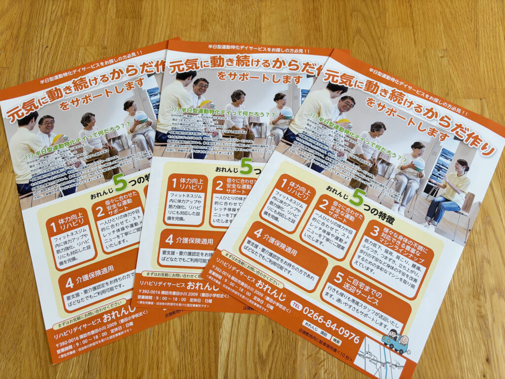 リハビリデイサービスおれんじ様の折込チラシができました。2026.3.28お知らせ リハビリデイサービスおれんじ様の折込チラシができました。 共有: Facebook で共有するにはクリックしてください (新しいウィンドウで開きます) Facebook クリックして X で共有 (新しいウィンドウで開きます) X いいね:いいね 読み込み中…previous栄農人様の会社案内ができました。