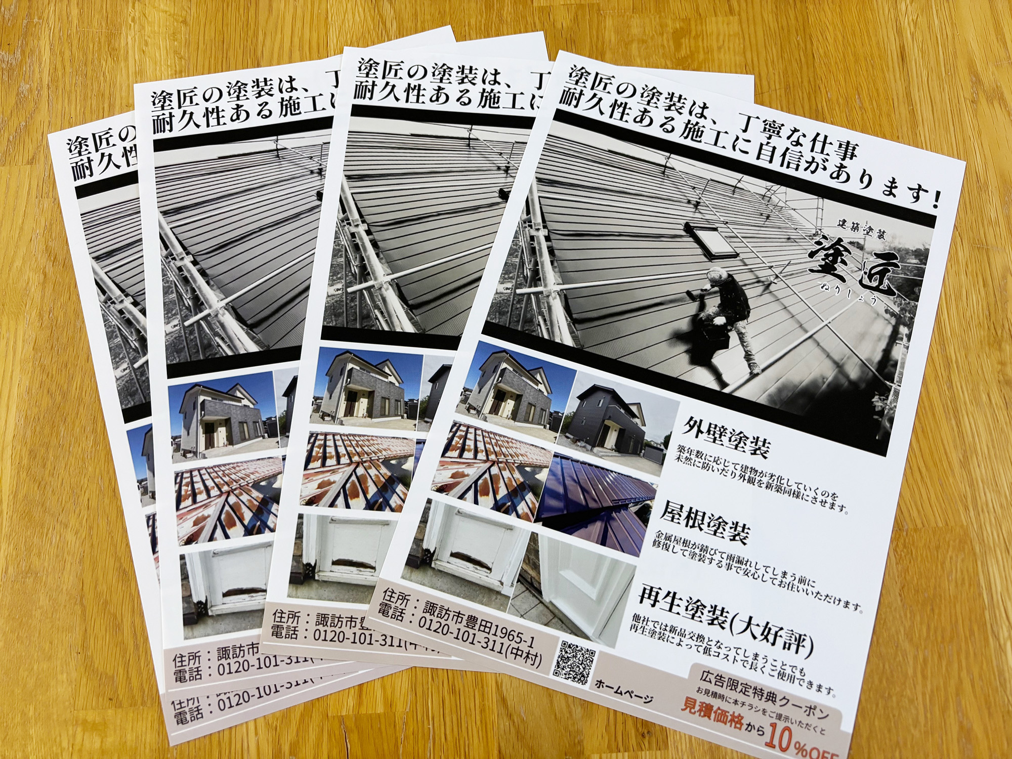 A4チラシ(塗匠様) #チラシ Criant:塗匠様 Area:長野県茅野市 Category:チラシ 一覧へ戻る PREVIOUS - A5リーフレット(蓼科プランツ様) NEXT - 差し込み会社案内(栄農人様)