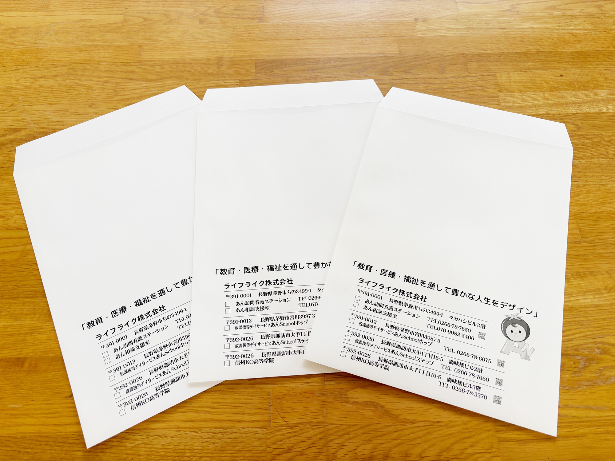 角2封筒(ライフライク株式会社様) #角2封筒 Criant:ライフライク株式会社様 Area:長野県茅野市 Category:角2封筒 一覧へ戻る PREVIOUS - 長三窓付き封筒(ライフライク株式会社様)